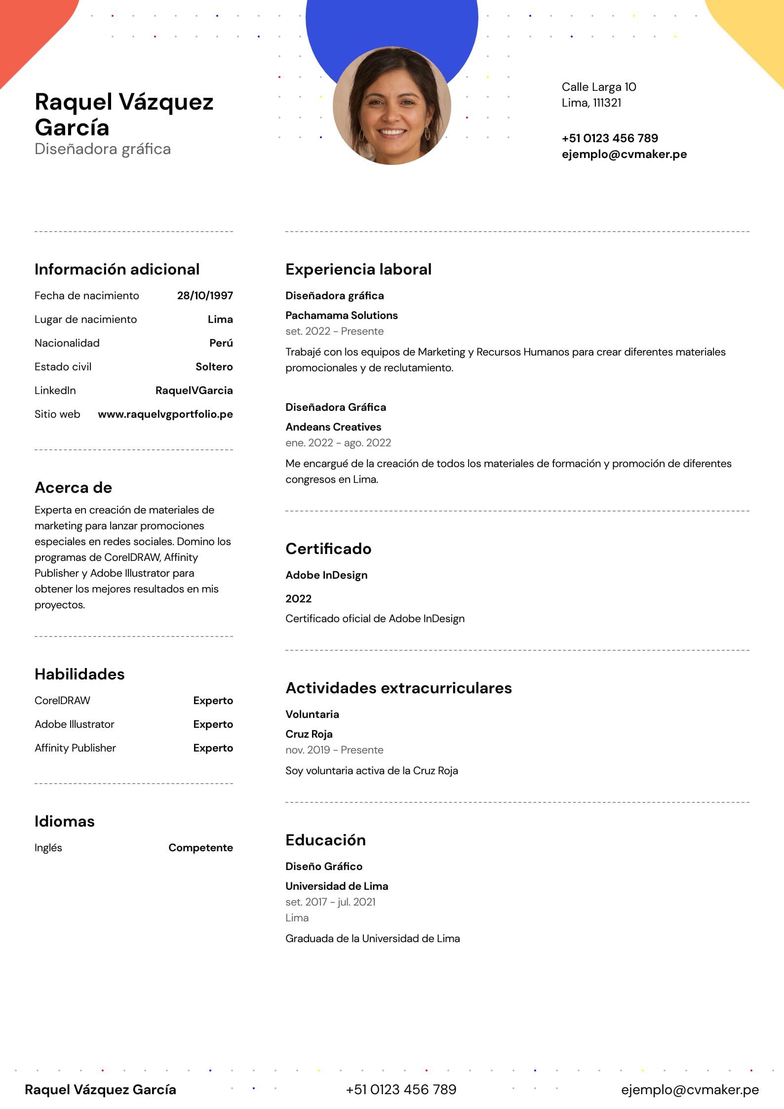 Ejemplo de Currículum de Diseñador Gráfico